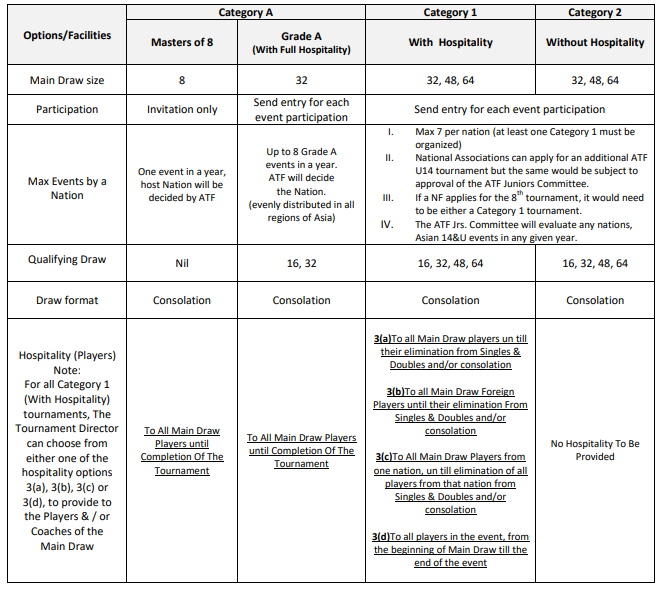 singles and / or doubles event with in the Asian 14&Under Series Tournaments.