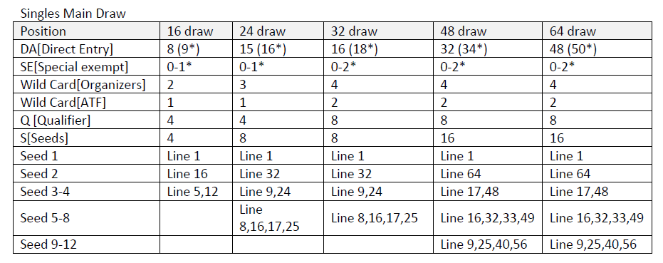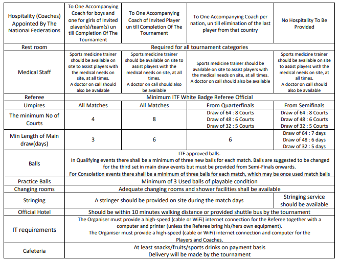 Minimum draw sizes for ITF Junior tournaments by grade are set out below. The minimum draw sizes for Grade 1 tournaments will be from 48 to 32 in 2020